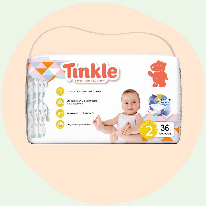Tinkle nappies are super soft and highly absorbent. The nappies are printed using water based ink, and they are filled with FSC certified Totally Chlorine Free (TCF) woodpulp.